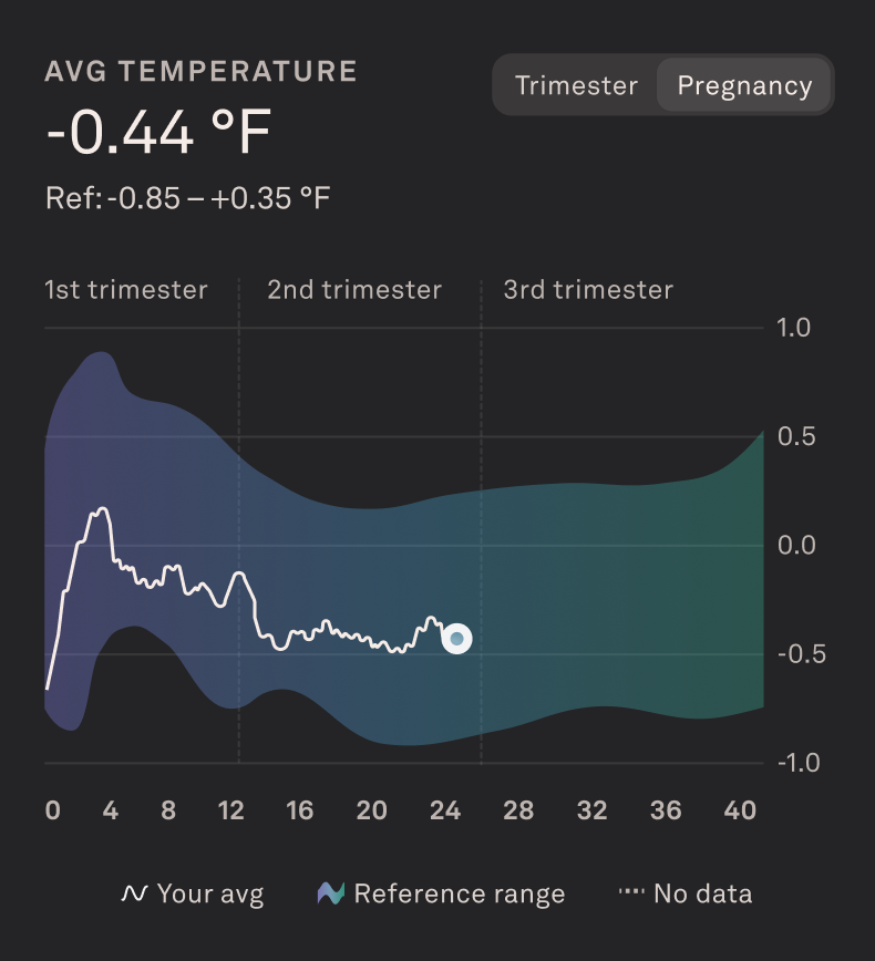 - Each graph includes a shaded reference range, based on the most commonly observed patterns among Oura members during pregnancy. It can provide some helpful context as you view your own data over time