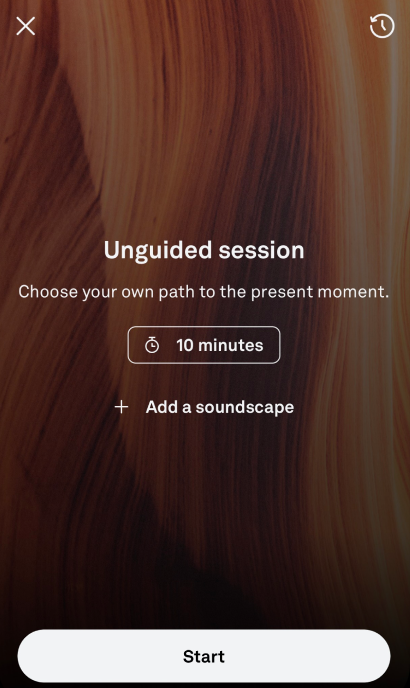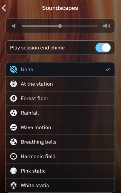 - Unguided sessions come without voice instruction, but you can select an optional soundscape, adjust volume, and toggle the session end chime on or off