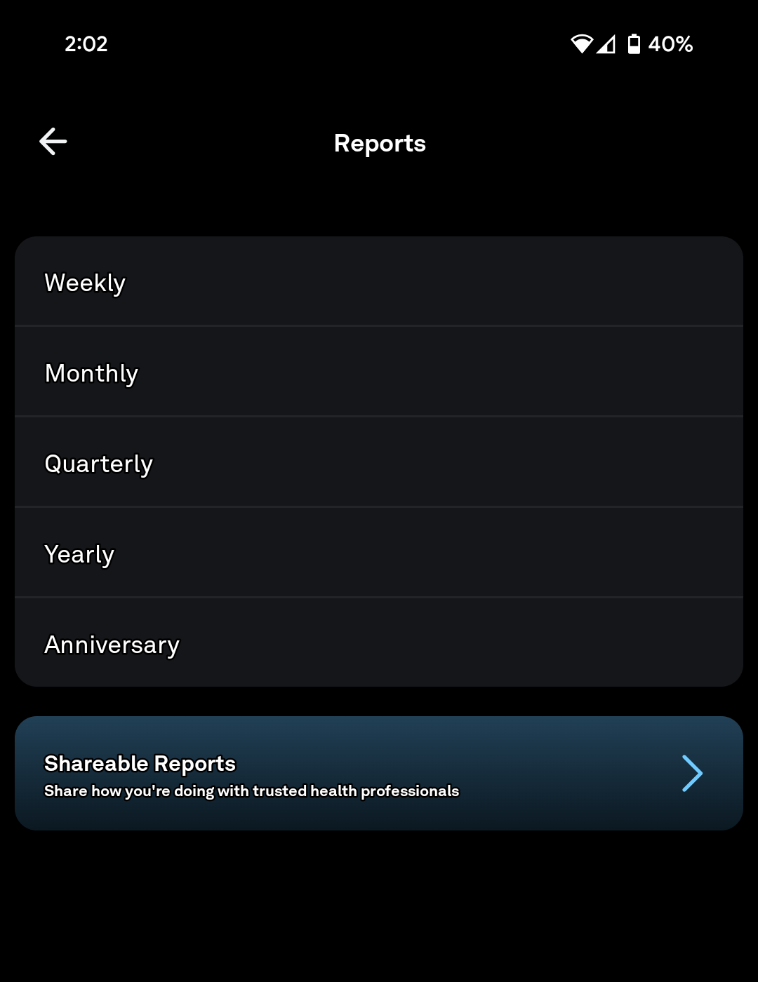 The Shareable Reports feature enables members to download sleep, daily movement, and cycle trends data and share those with trusted health professionals and providers. Shareable Reports are available for:
