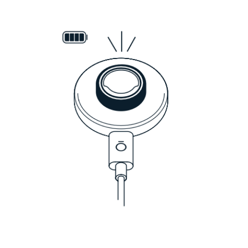 Once you’ve paired your ring to your device via Bluetooth and successfully established a ring connection in your Oura App, the blinking blue will turn to solid blue, and then fade into white. Once a ring is fully charged, the LED will turn green.