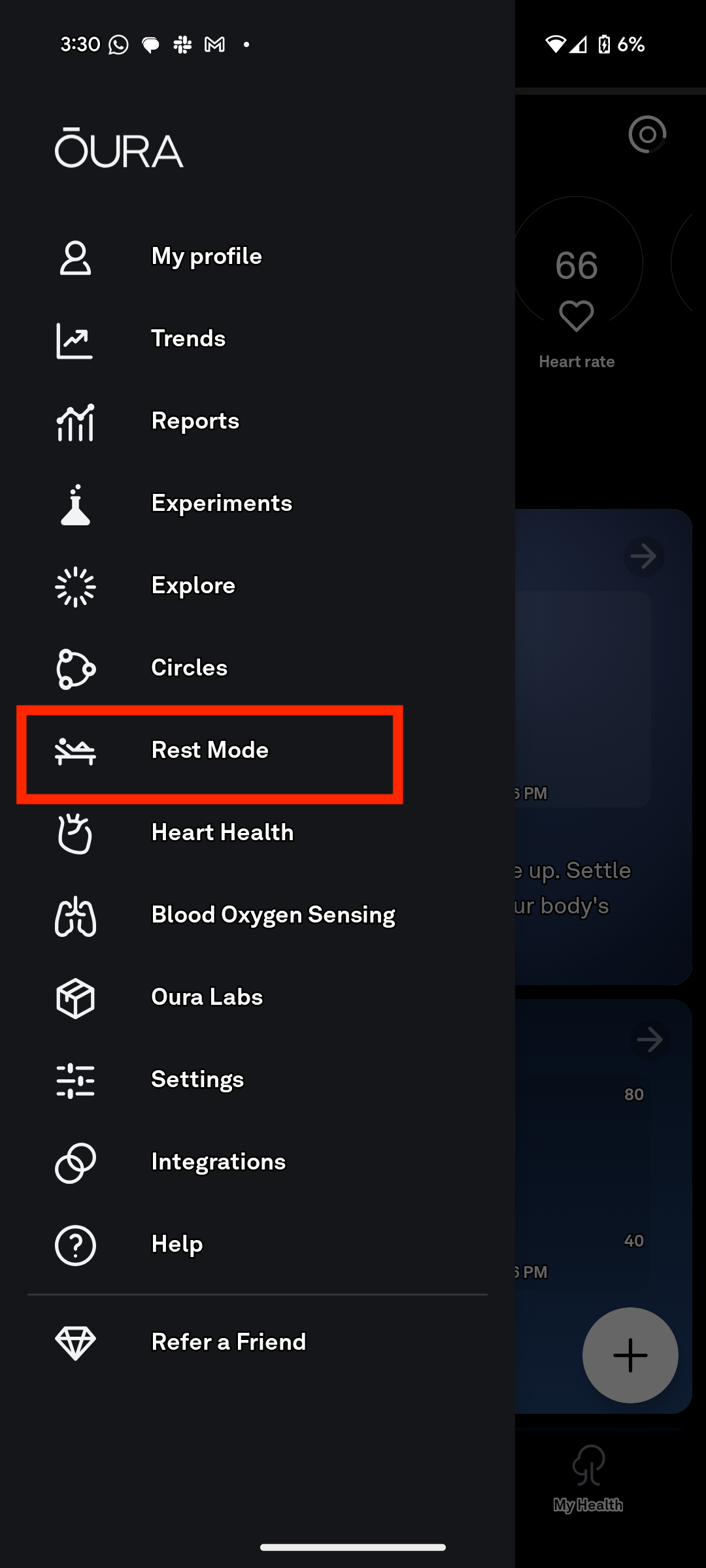 Go to the menu in the upper-left corner of the Oura App Today tab, then tap Rest Mode.