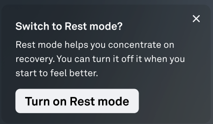 During each day on Rest Mode, a notification card will appear asking if selected tags are still applicable. This daily notification allows you to track your symptoms and your progress.