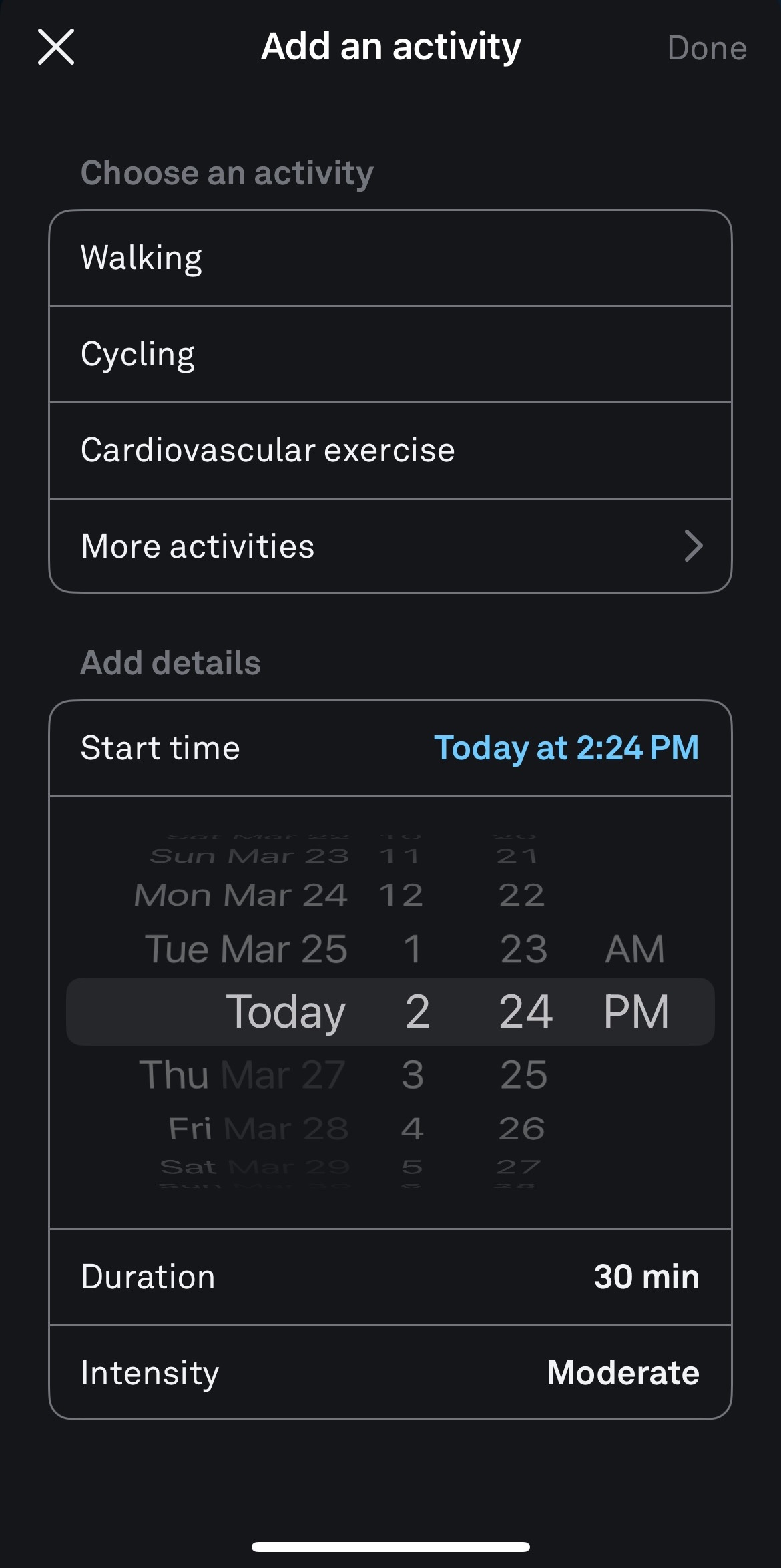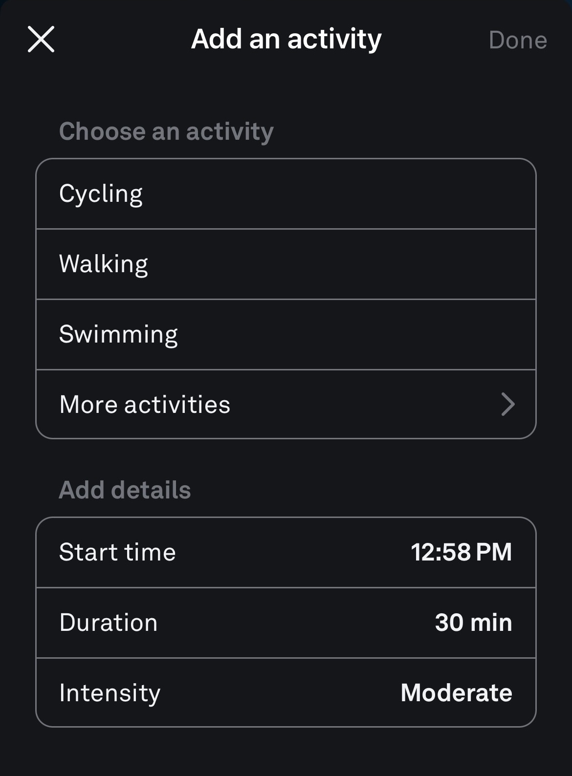 Select "Done" in the upper-right corner to save your activity