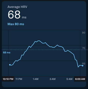 - High HRV (relative to your baseline) is associated with activation of your "rest-and-digest" branch, general physical fitness, and good recovery. Higher average nighttime HRV measurements have also been linked to better sleep quality and vice-versa.